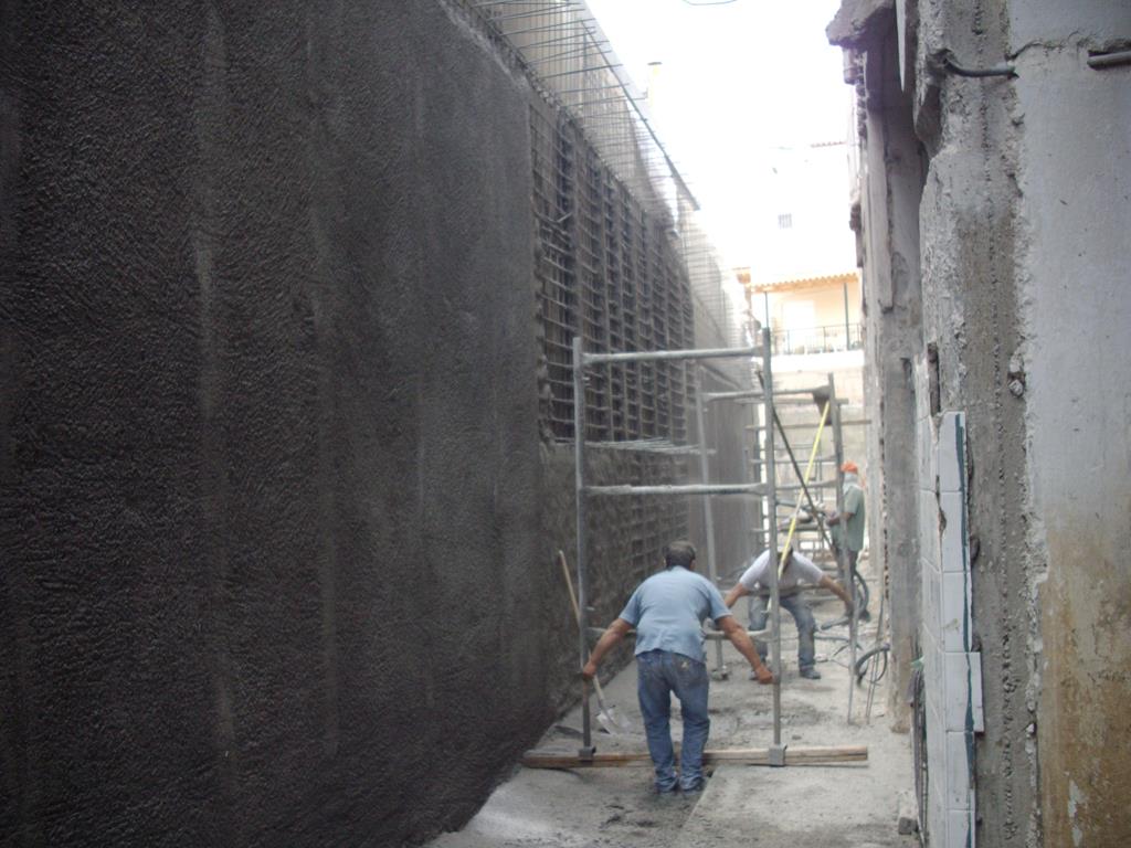 Τέλος, σκυροδετήθηκαν οι μανδύες των υποστυλωμάτων, δοκών και πλακών με εκτοξευόμενο σκυρόδεμα (gunite).